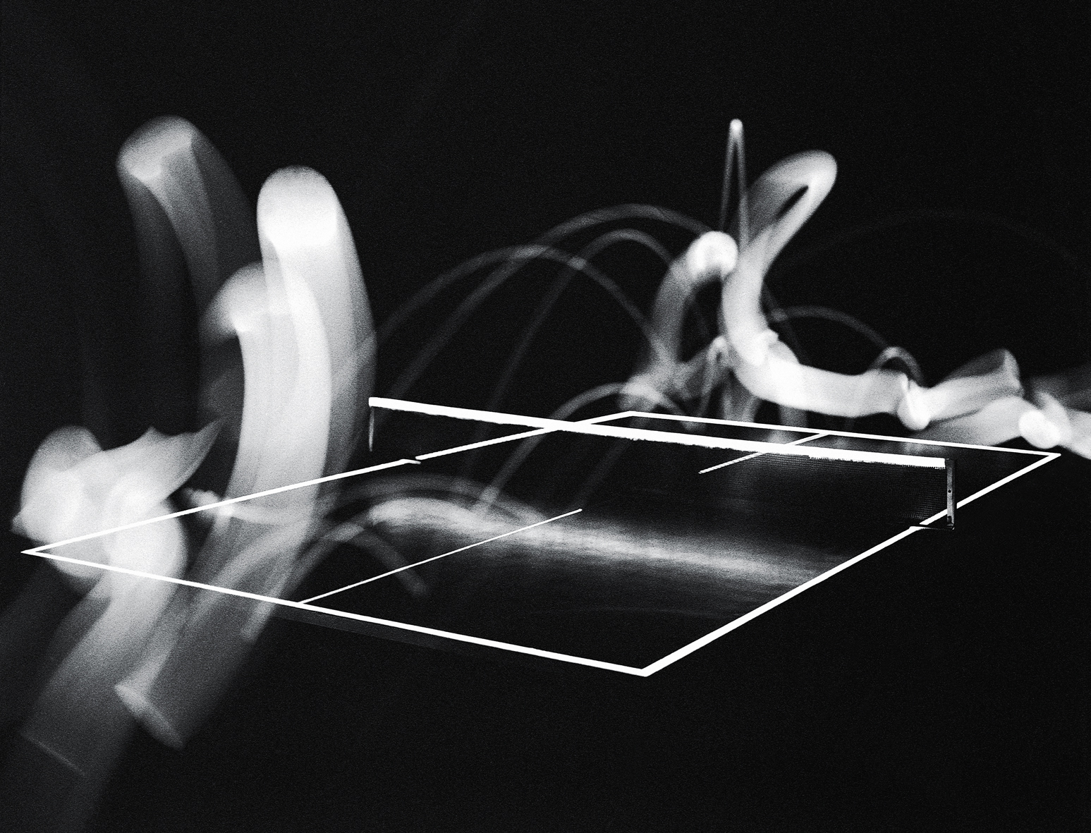 Bingbong – Präparierter Tischtennistisch mit nachleuchtender Farbe – Analogfotografie eines Ballwechsels – Künstlerhaus Passage Wien – Koproduktion mit Paul Schneggenburger